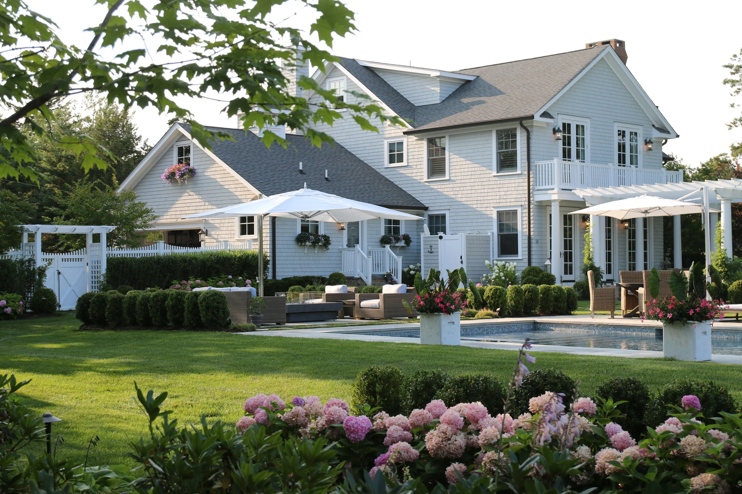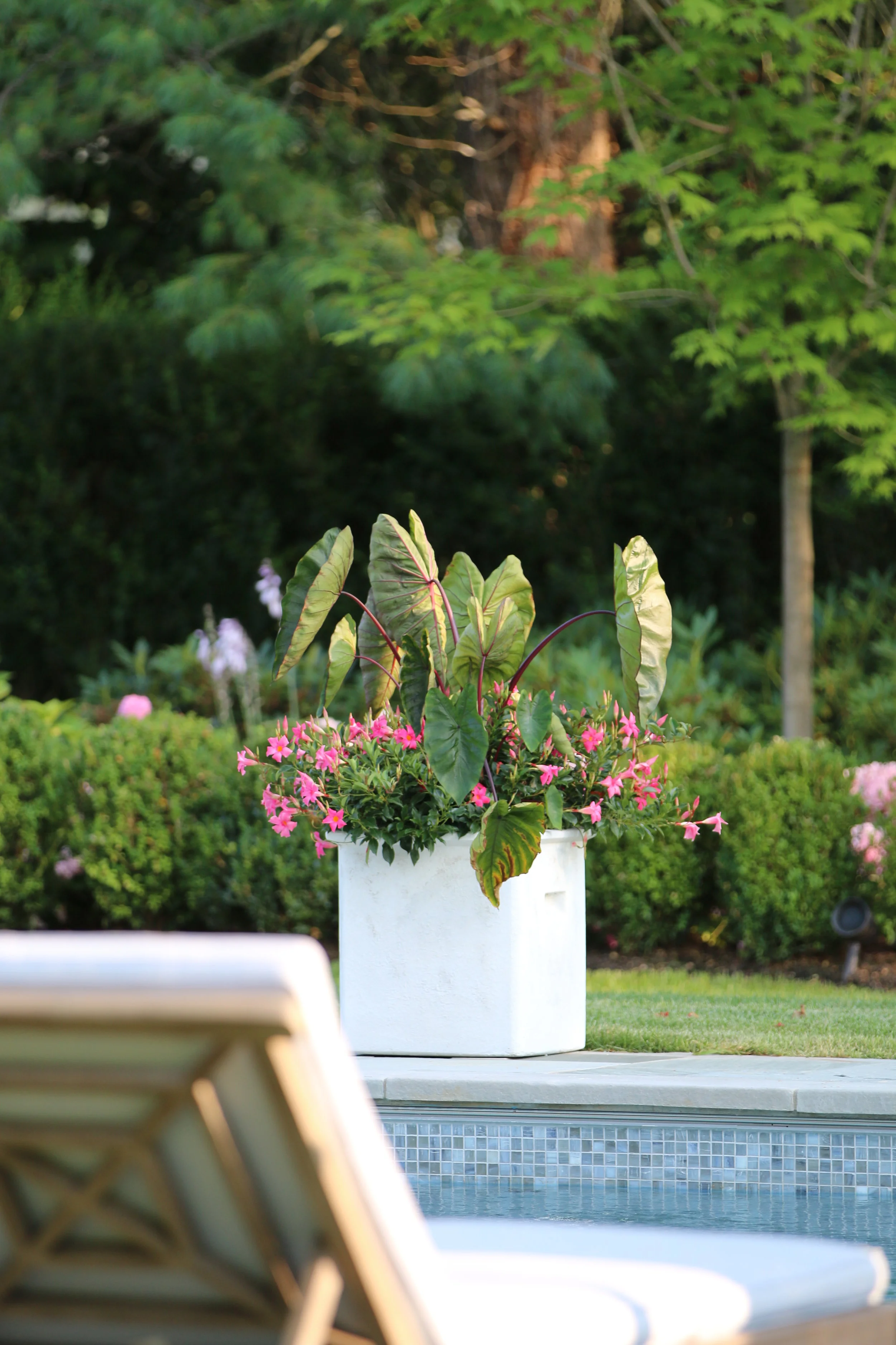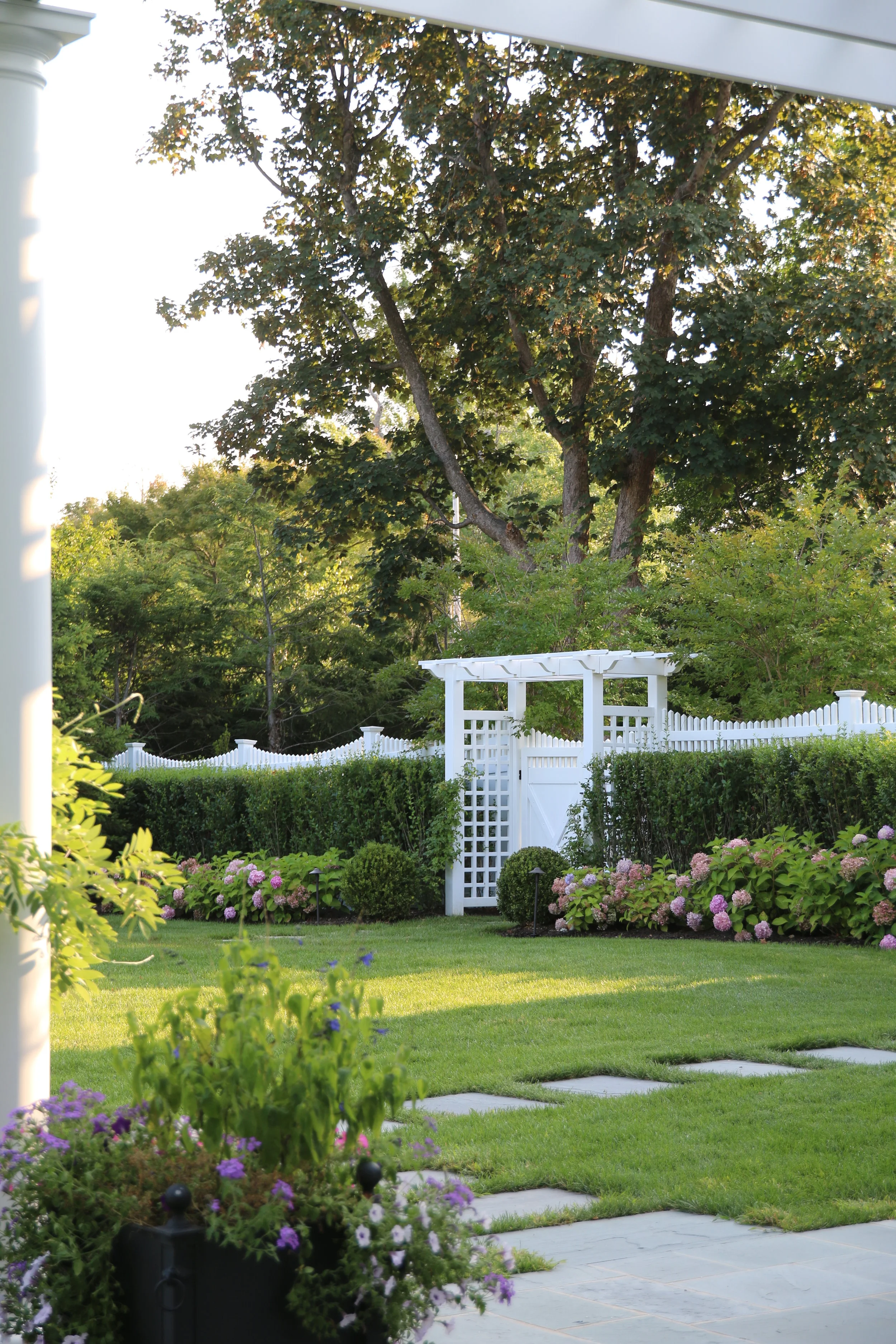 A simple plant palette of boxwood, hydrangea, privet and crape myrtle make up the majority of plant material used in this design. Large evergreens border the property to provide seclusion from neighbors while a consistent perennial palette provides a punch of color during summer months. The beautifully detailed pool is credited to Edgewater Pools in Red Bank.